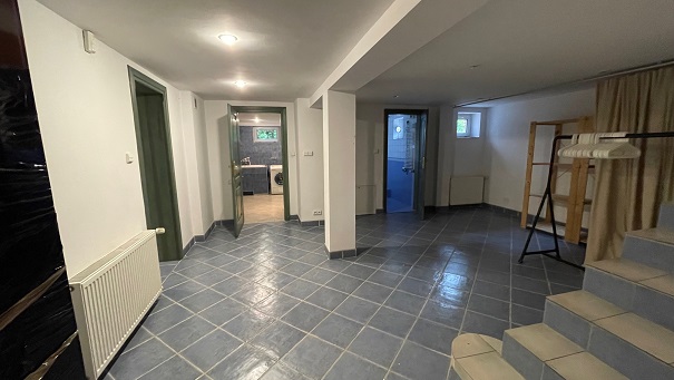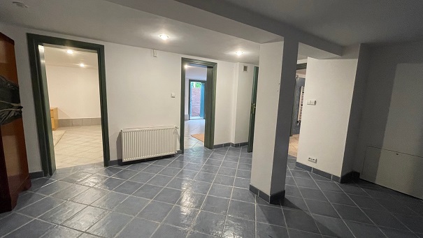 piwnica – 3 pokoje, łazienka z prysznicem, pomieszczenie gospodarcze (piec gazowy), duży hall. Do piwnicy jest osobne wejście umożliwiające urządzenie w tej części domu NIEZALEŻNEJ działalności gospodarczej, biura itp.